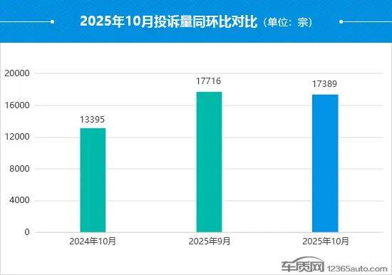 据国内领先的缺陷汽车产品信息收集和汽车消费者投诉信息受理平台车质网统计,2025年10月共受理车主有效投诉信息17,389宗(其中含第三方平台和后装轮胎投诉共39宗),环比下降1.8%,同比上涨29.8%。今年前10月累计投诉量已逾19万宗,超过2024年总投诉量,较去年同期上涨32.2%。
