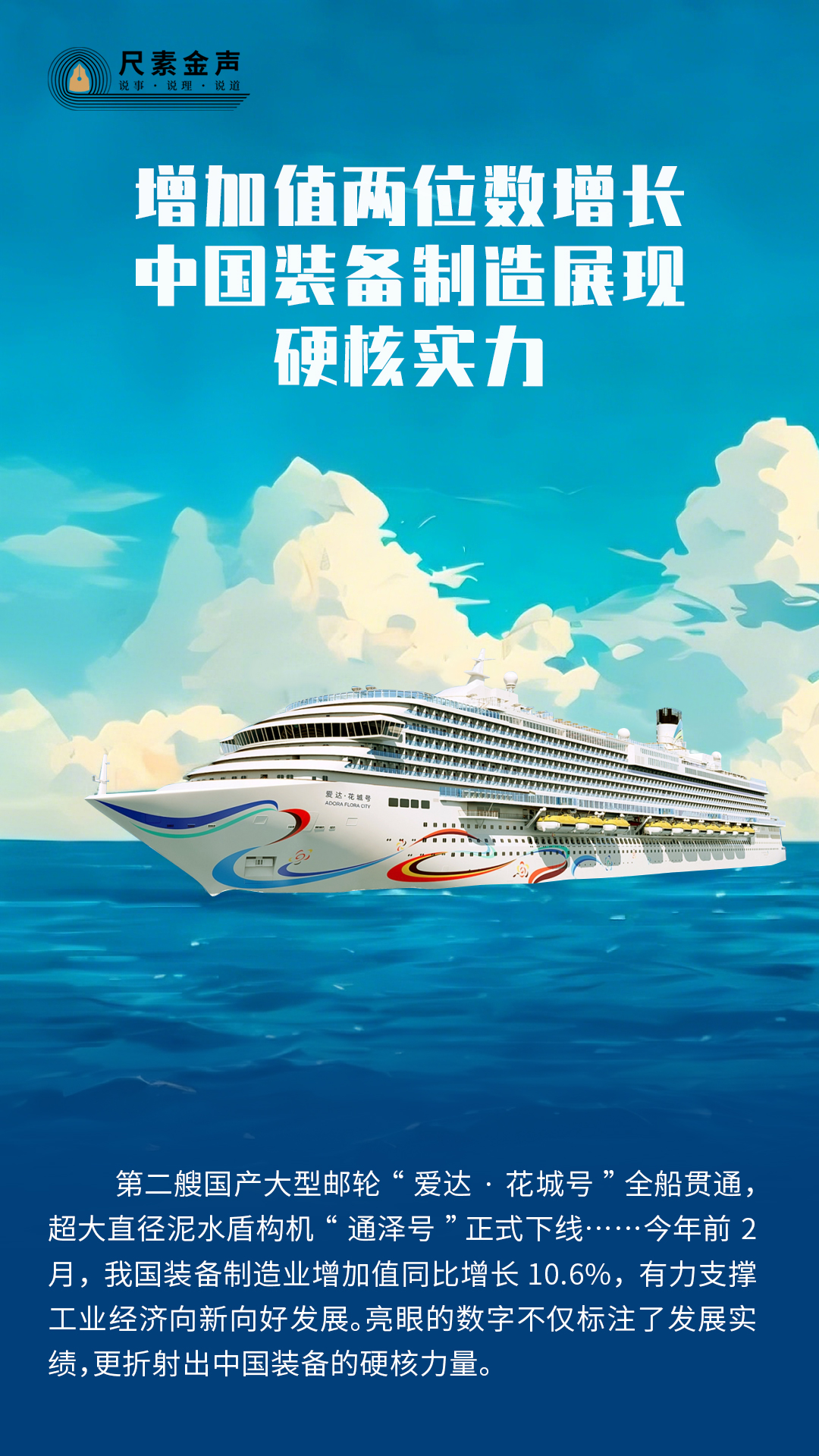 第二艘国产大型邮轮“爱达·花城号”全船贯穿,超大直径泥水盾构机“通泽号”正式下线月,我国配备制作业增加值同比增加10.6%,有力支撑工业经济向新向好展开。亮眼的数字不只标示了展开实绩,更折射出我国配备的硬核力气。